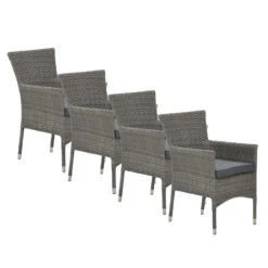 De vier Jerba tuinstoelen zijn gemaakt van een stevig aluminium binnen frame met daaromheen 7mm wicker vlechtwerkdraad in de kleur organic grey. Dit wicker is gemaakt van stevig kunststof waardoor de stoel zeer duurzaam is.
