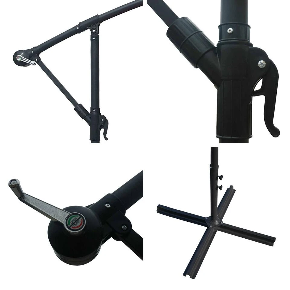 Met zijn klassieke, elegante lijnen beschermt onze OAHU 350 cm parasol je tegen de zonnestralen en kun je in alle rust genieten van je tuin, terras of balkon… Met zijn stevige, geëpoxeerd stalen frame en praktische zwengel heeft onze parasol alles wat je nodig hebt om er een echte blikvanger van te maken. Vergeet niet om verzwaarde of opvulbare platen toe te voegen om je excentrieke parasol op zijn plaats te houden.