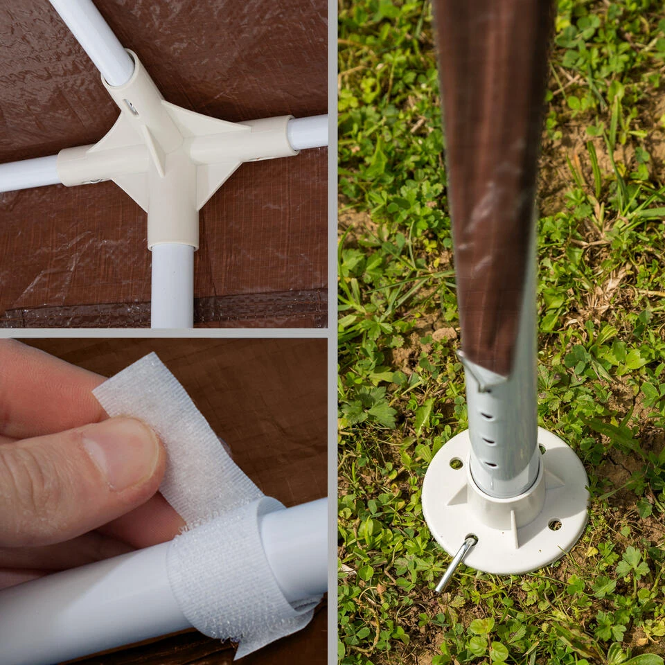 Houd er rekening mee dat het paviljoen tijdens storm of zeer slecht weer geen bescherming biedt. In dit geval moet u geen gebruik maken van het artikel en het niet in de open lucht laten staan. Onder bepaalde omstandigheden kan er dan schade aan het paviljoen ontstaan.