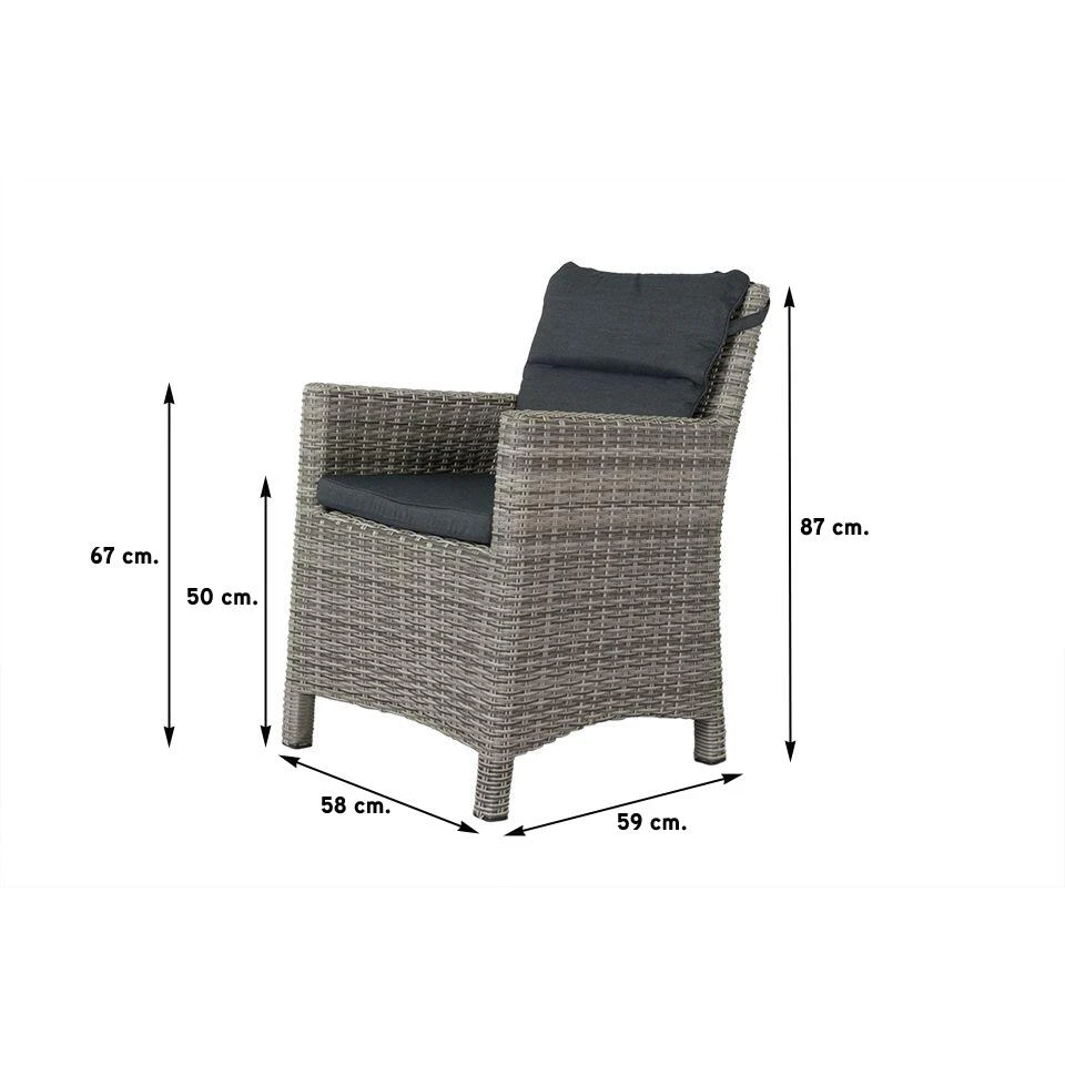 De Olivia tuinstoel heeft een actieve zit en is daarom perfect geschikt als dining tuinstoel. De wicker tuinstoel is te combineren bij veel verschillende soorten tafels. De armleuninghoogte van de wicker tuinstoel is 67 cm. zodat de stoel onder bijna iedere tuintafel past.Â