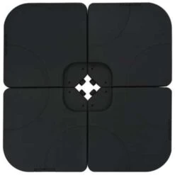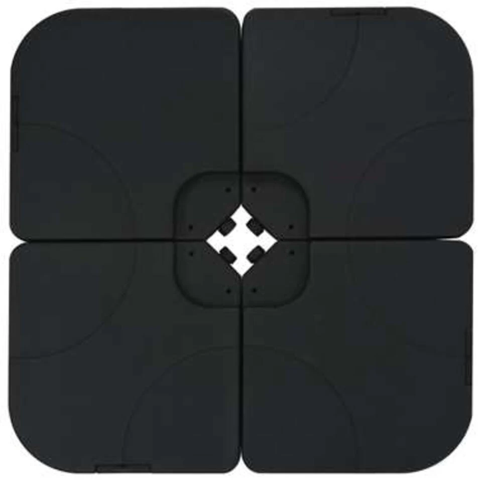Deze parasolvoet bestaat uit vier losse onderdelen die kunnen worden gevuld met water of zand als verzwaring.// Het is een stevige basis voor uw parasol.